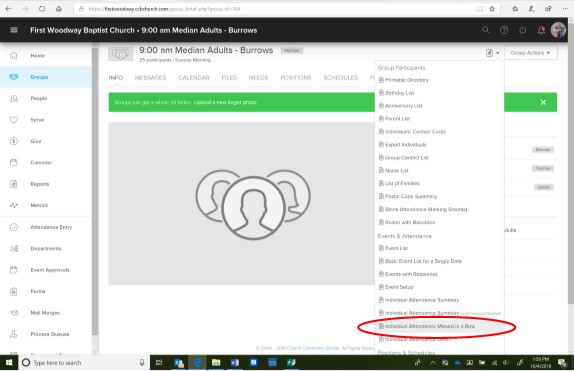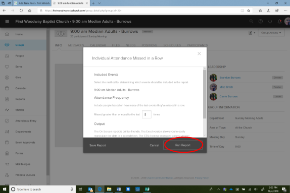 CCB has a powerful reporting tool that is available to group leaders. With this tool, you can learn a lot about your group, including who has been absent for several weeks in a row. Here’s how: